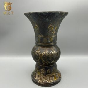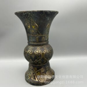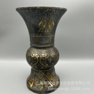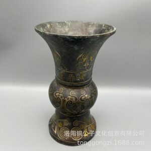 错金银青铜器尊酒器花瓶仿古青铜器铜摆件古玩做旧收藏家居装饰品Gilt-Silver Inlaid Bronze Vessel (Zun) — Wine Vessel/Vase — Antique-Style Bronze Ornament — Patinated Collectible — Home Décor
