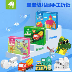 Baby’s high-value handmade semi-finished animal construction transportation toys 3D three-dimensional DIY full set of origami kindergarten